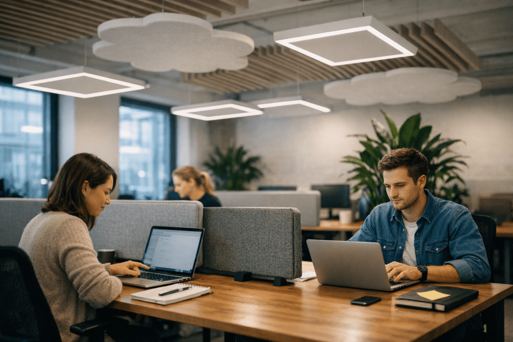 Welke akoestische oplossingen zijn het meest effectief voor open werkplekken?